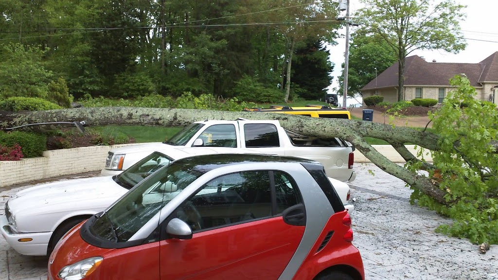 A tree fell at my folks house. Looks like there was only minimal damage. Only one car got hurt which is pretty good considering there were 4 in the driveway and two trees fell. One on either side of the hummer...